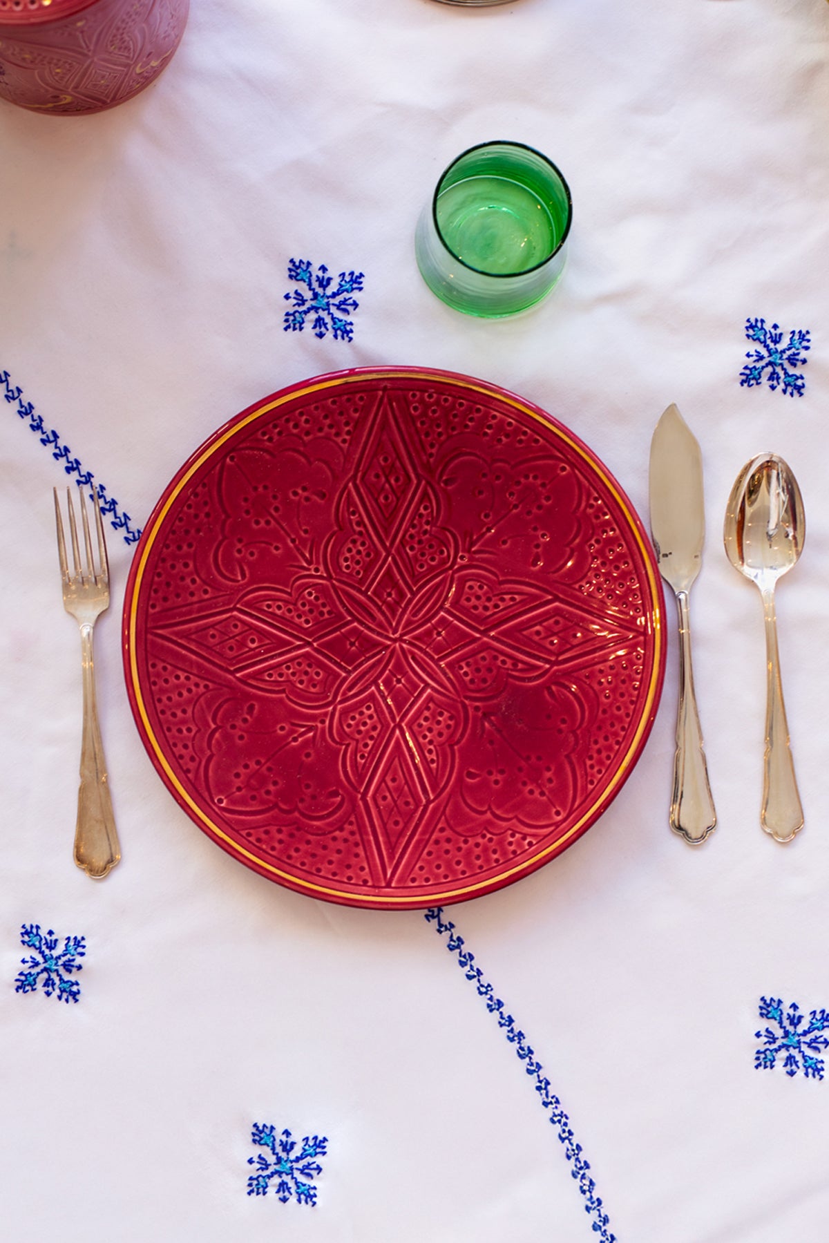 • Fabrication artisanale : Chaque pièce est soigneusement réalisée à la main à travers une dizaine d'étapes essentielles, incluant le moulage, le peinturage des motifs, l'émaillage et trois cuissons, dont la dernière révèle l'éclat de l'or véritable. Ce long processus peut prendre jusqu'à 10 jours. Ce dévouement au détail assure une qualité exceptionnelle tout en mettant en valeur le savoir-faire traditionnel marocain.