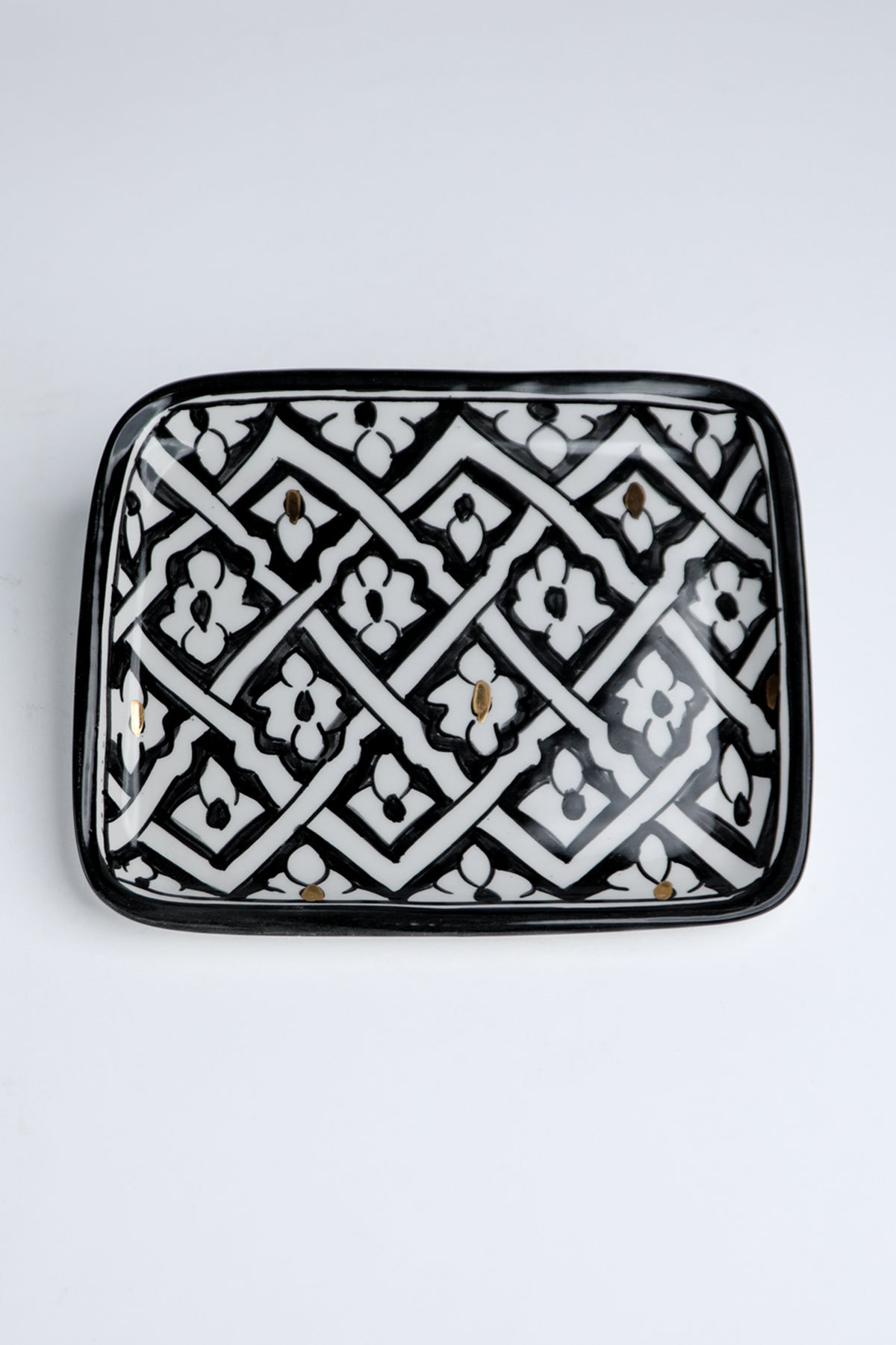 Découvrez notre Petit plateau Fassia noir gold conçu pour sublimer vos moments de convivialité. Avec ses rebords pratiques, ce plateau est idéal pour présenter des hors-d'œuvre, des douceurs, ou encore des petits plats en sauce. Son design artisanal et raffiné apporte une touche de charme à votre table, que ce soit lors de dîners élégants ou de brunchs en famille. De plus, il s'intègre harmonieusement dans divers espaces de votre intérieur, comme sur une table basse ou dans une salle de bain, offrant ainsi une présentation soignée.