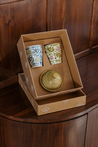 Ce coffret est précieux car il soutient l'artisanat marocain, contribuant ainsi à sa pérennité. Chaque geste témoigne de l'engagement envers un savoir-faire authentique et une culture riche. De plus, un objet fait main a une valeur humaine inestimable, invitant à la connexion, au partage et à des instants conviviaux.