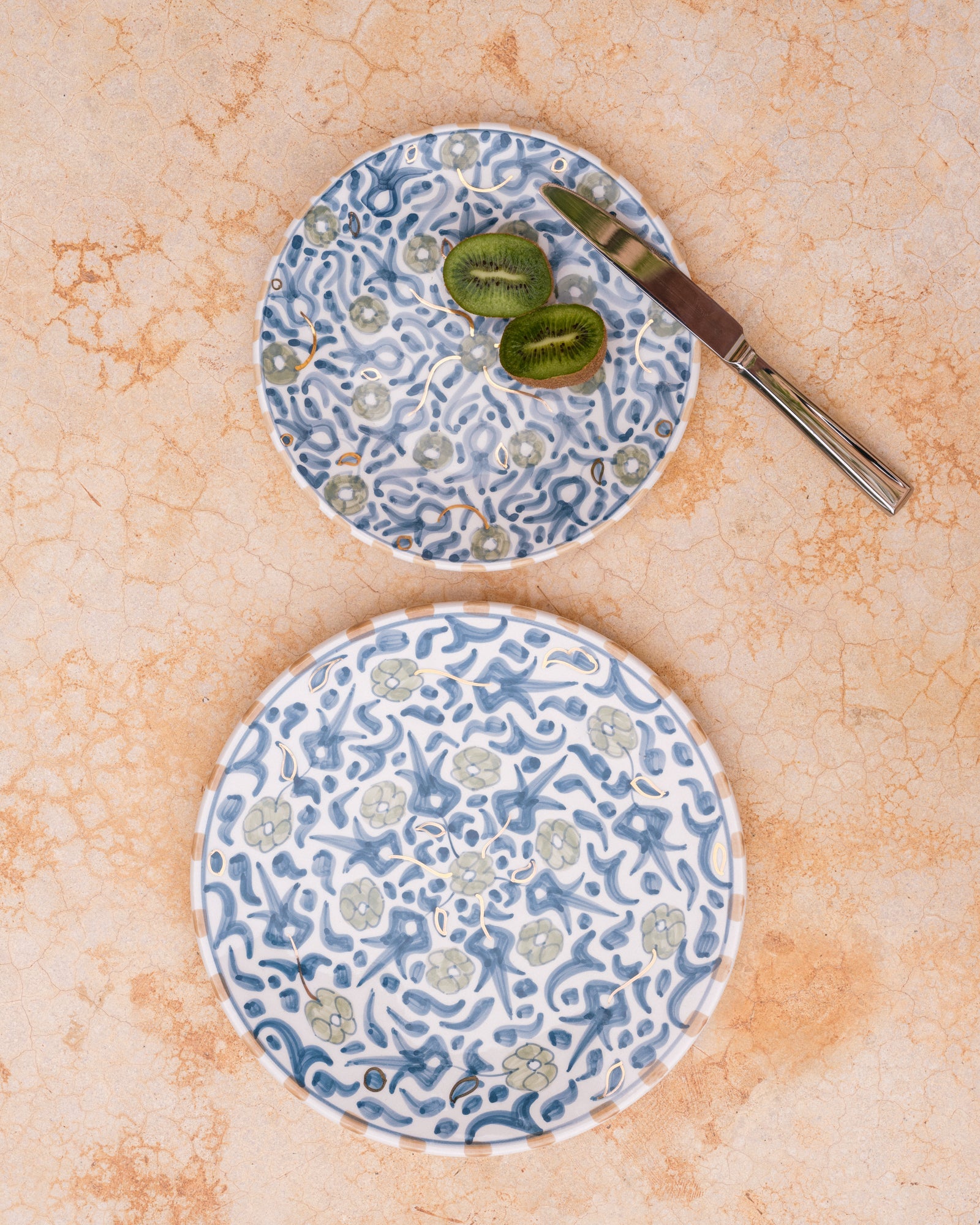 Découvrez nos Assiettes fleurs bleu stone, des pièces emblématiques et les plus prisées de notre marque. Véritables pièces maîtresses de votre table, elles offrent un terrain de jeu idéal pour jouer au Mix&Match Chabi-Chic. Leur polyvalence permet de les mixer à l’infini, que ce soit en total look ou de manière dépareillée, et l’effet est toujours saisissant.