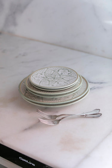 Découvrez nos Assiettes Zwak mint gold, des pièces emblématiques et les plus prisées de notre marque. Véritables pièces maîtresses de votre table, elles offrent un terrain de jeu idéal pour jouer au Mix&Match Chabi-Chic.