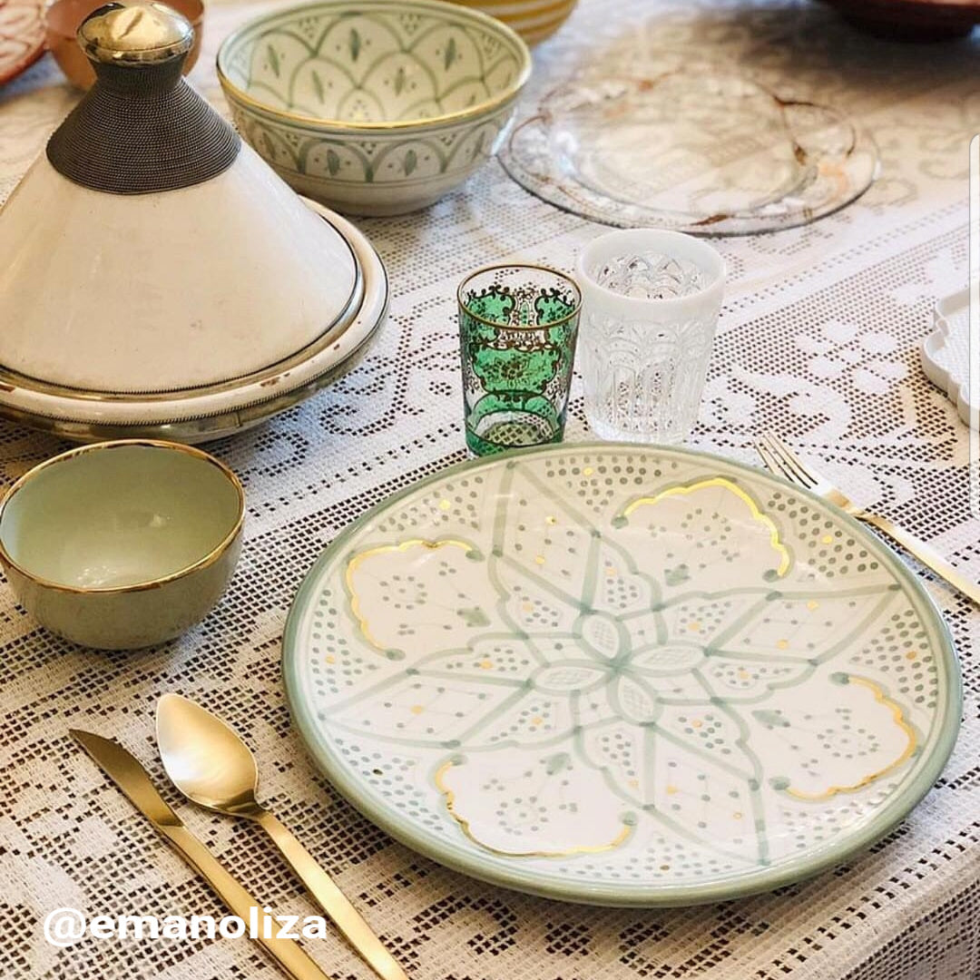 - Fabrication artisanale : Chaque pièce est soigneusement réalisée à la main à travers une dizaine d'étapes essentielles, incluant le moulage, le peinturage des motifs, l'émaillage et trois cuissons, dont la dernière révèle l'éclat de l'or véritable. Ce long processus peut prendre jusqu'à 10 jours. Ce dévouement au détail assure une qualité exceptionnelle tout en mettant en valeur le savoir-faire traditionnel marocain.