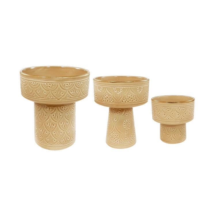 Découvrez nos Bols Aperitivo Empreinte Sahara, de petites coupes élégantes conçues pour mettre en scène vos aliments. Ces objets au design raffiné incarnent parfaitement le style Chabi-Chic, alliant esthétique et fonctionnalité pour apporter une touche d'élégance à vos moments de partage. Que ce soit sur une table lors d’un apéritif ou au tea time pour présenter chocolats et gâteaux, ces bols sauront sublimer vos délices culinaires.