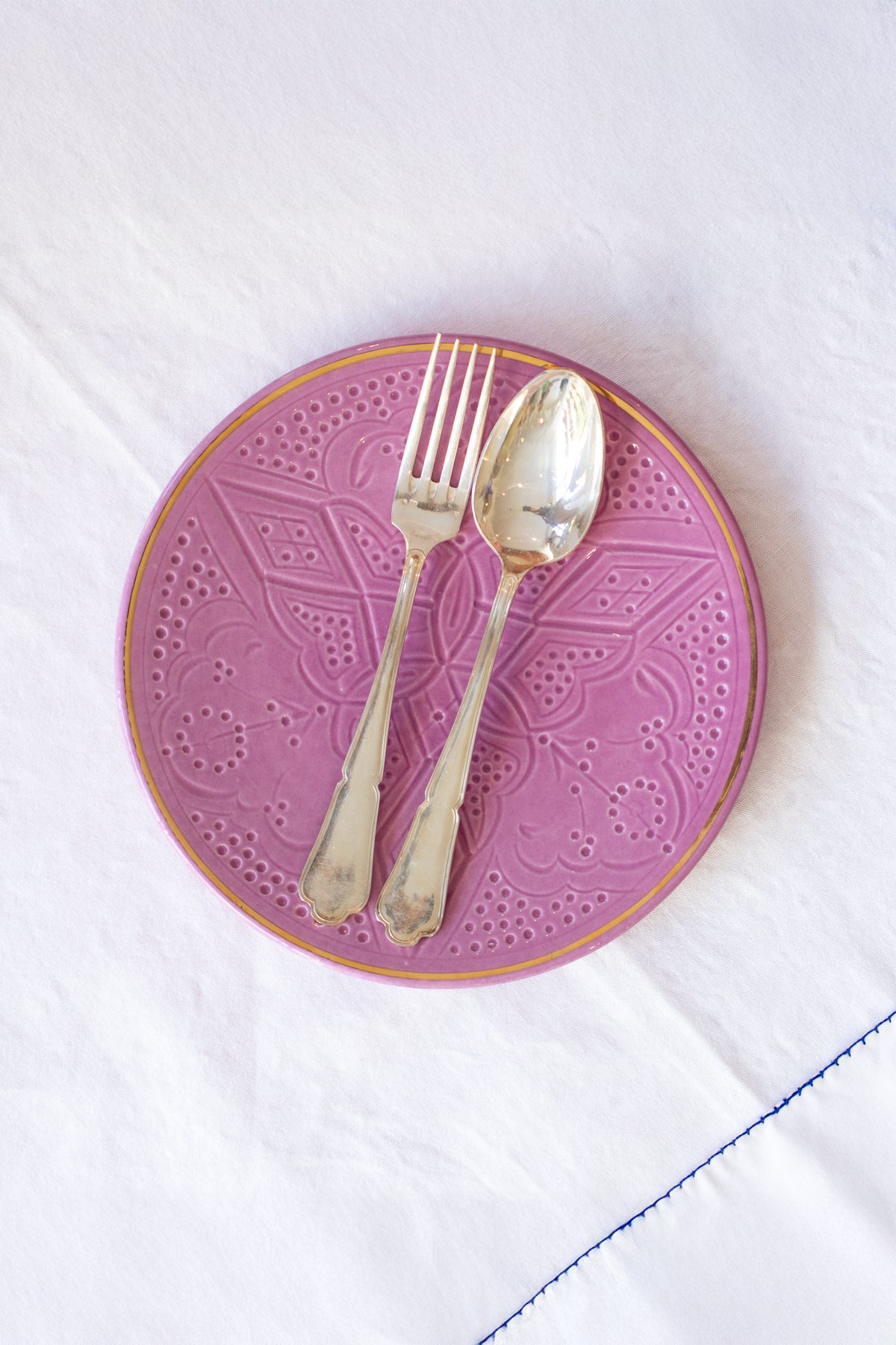 Découvrez nos Assiettes Empreinte Lilas, des pièces emblématiques et les plus prisées de notre marque. Véritables pièces maîtresses de votre table, elles offrent un terrain de jeu idéal pour jouer au Mix&Match Chabi-Chic. Leur polyvalence permet de les mixer à l’infini, que ce soit en total look ou de manière dépareillée, et l’effet est toujours saisissant.