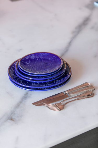 Découvrez nos Assiettes empreinte bleu majorelle gold, des pièces emblématiques et les plus prisées de notre marque. Véritables pièces maîtresses de votre table, elles offrent un terrain de jeu idéal pour jouer au Mix&Match Chabi-Chic. Leur polyvalence permet de les mixer à l’infini, que ce soit en total look ou de manière dépareillée, et l’effet est toujours saisissant.