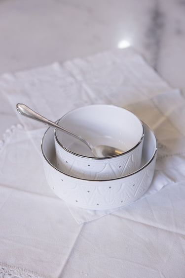 Découvrez notre collection de Plats de Service EMPREINTE NOOR ARGENTÉE, qui rehausse n'importe quel service de table tout en étant surtout très pratiques. Disponibles en trois tailles — petit bol, saladier et grand plat droit — Que vous serviez des entrées, des salades ou des plats principaux en sauce, ces plats répondent à tous vos besoins culinaires tout en apportant une touche raffinée à votre table.