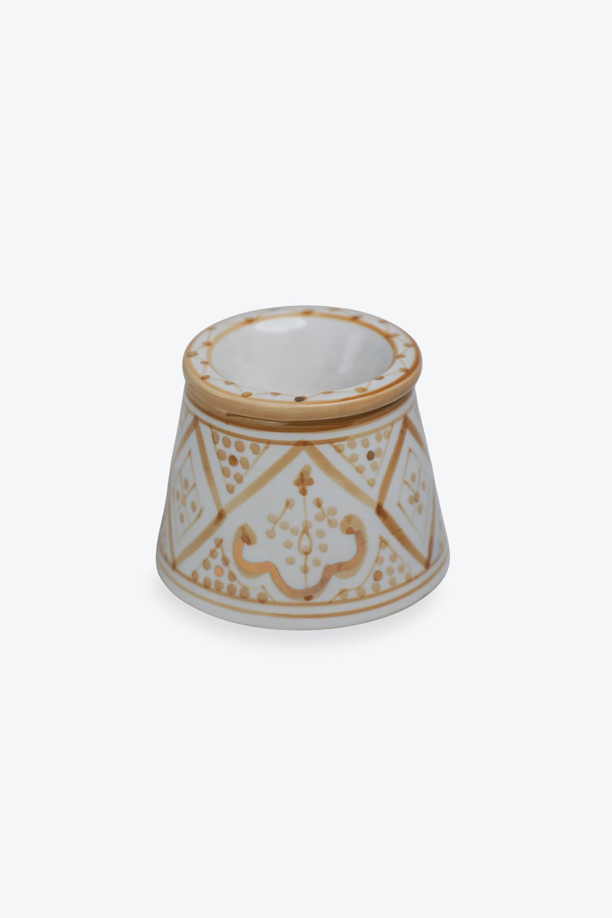- Fabrication artisanale : Chaque pièce est soigneusement réalisée à la main à travers une dizaine d'étapes essentielles, incluant le moulage, le peinturage des motifs, l'émaillage et trois cuissons, dont la dernière révèle l'éclat de l'or véritable. Ce long processus peut prendre jusqu'à 10 jours. Ce dévouement au détail assure une qualité exceptionnelle tout en mettant en valeur le savoir-faire traditionnel marocain.