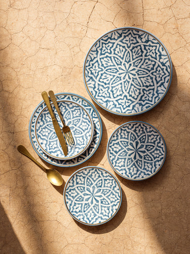 Découvrez nos Assiettes fassia BLEU STONE des pièces emblématiques et les plus prisées de notre marque. Véritables pièces maîtresses de votre table, elles offrent un terrain de jeu idéal pour jouer au Mix&Match Chabi-Chic. Leur polyvalence permet de les mixer à l’infini, que ce soit en total look ou de manière dépareillée, et l’effet est toujours saisissant.