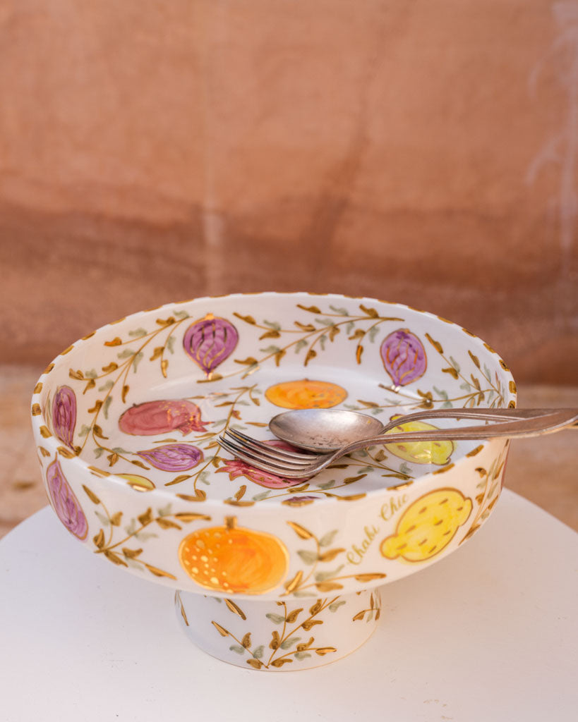 Toutes les couleurs du motif Tutti Frutti font partie intégrante de la palette signature de Chabi. Vous pourrez donc mixer cette collection avec aisance en associant toutes les teintes qu'elle comprend : lilas, aubergine, paille, kaki et vert amande. Que vous optiez pour des couleurs vibrantes, des motifs subtils ou des designs contemporains, cette pièce s'intégrera parfaitement, ajoutant une touche d'authenticité et d'élégance à votre table. Ce motif sublimera n'importe quel autre ensemble de vaisselle.
