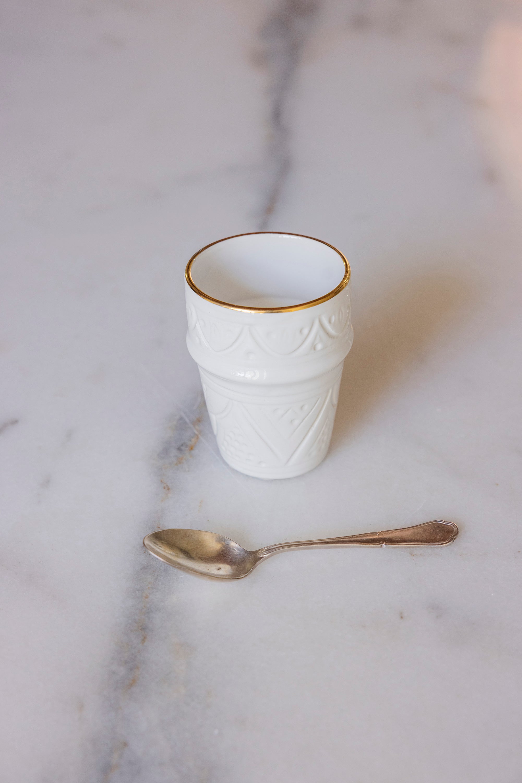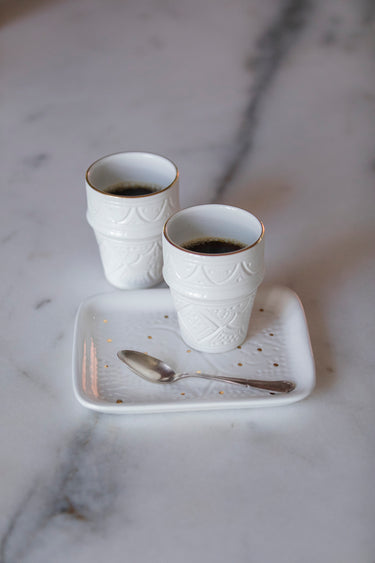 Découvrez le mariage entre le traditionnel et le moderne avec notre Grande tasse beldi Empreinte blanc gold gold exceptionnellement réalisé pour vos cafés latte crémeux et thés parfumés. La générosité de ses dimensions vos offre une largeur esquisse de saveur sur le palais  pendant vos moment de dégustation. Son design raffiné inspiré des tasses traditionnelles Marocaines, vos procures confort et esthétique à la fois.