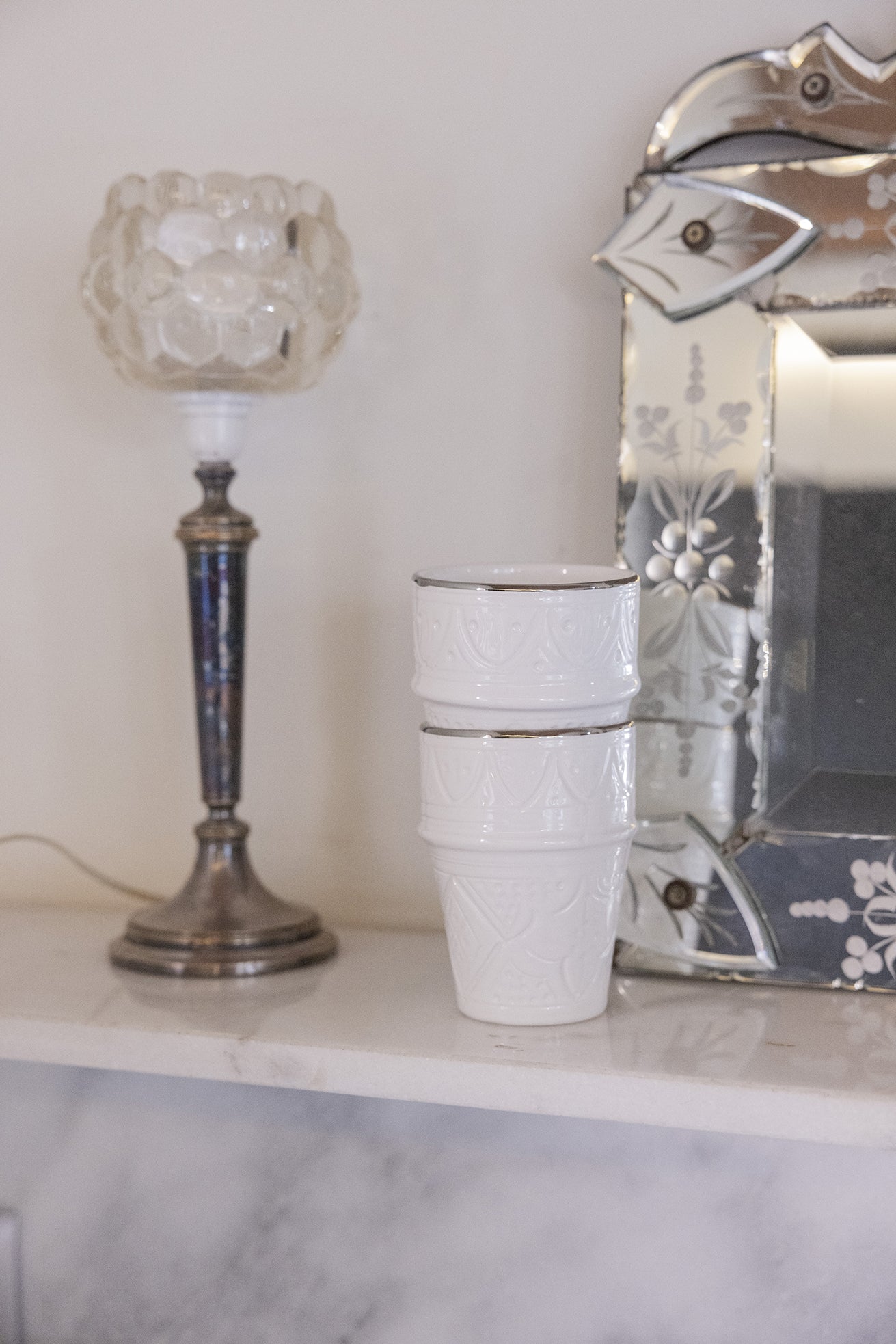 Découvrez le mariage entre le traditionnel et le moderne avec notre Grande tasse beldi Empreinte exceptionnellement réalisé pour vos cafés latte crémeux et thés parfumés. La générosité de ses dimensions vos offre une largeur esquisse de saveur sur le palais pendant vos moment de dégustation. Son design raffiné inspiré des tasses traditionnelles Marocaines, vos procures confort et esthétique à la fois.