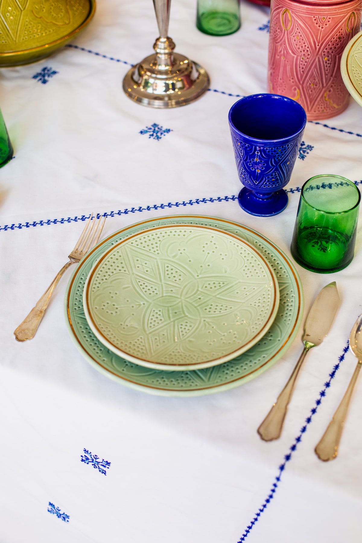 Découvrez nos Assiettes Empreinte MINT, des pièces emblématiques et les plus prisées de notre marque. Véritables pièces maîtresses de votre table, elles offrent un terrain de jeu idéal pour jouer au Mix&Match Chabi-Chic. Leur polyvalence permet de les mixer à l’infini, que ce soit en total look ou de manière dépareillée, et l’effet est toujours saisissant.